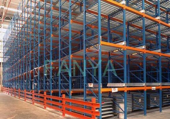 重力式貨架是一種托盤類存取貨架,該貨架系統為了便于存取貨物,在貨架上安裝了軌道,在存取貨物時利用貨物的自重來滑動。因為重力式貨架沒有設計叉車通道,所以可以快速存取貨物。
